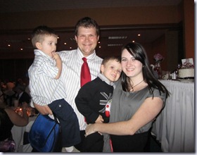BIG CONGRATS and thanks to Uncle Seann and Aunt Wendy for letting us be a part of their big day! It was an amazing day with great friends and family. Big thanks to our nurse Shelly for pulling a double to stay with Braden during the big day, Theresa and Lance for staying with me for the re-do of my hair and tolerated my nervous break down, Aunt Shelly for taking care of Jacob during the wedding, Gma and Gpa Byersdorfer for taking care of Evan during his meltdown and at the reception, and to Uncle Beanie and Aunt Ann for taking care of Jacob at home while we partied it up at the reception. This weekend couldn’t have been pulled off without all of you helping us!