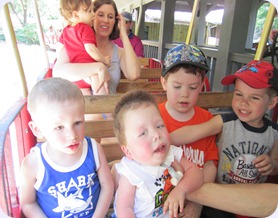 This summer marked a lot of firsts for the boys! We all went camping, went to the zoo, went to Adventureland, saw the National Balloon classic, went to the State Fair, first boat ride at the Boesen reunion, first I-Cubs game as a family,Evan rode his very first RAGBRAI, and Braden made his first trips to Wal-Mart, Hy-Vee, and went swimming for the first time! Like I said, we have been on the go all summer long.